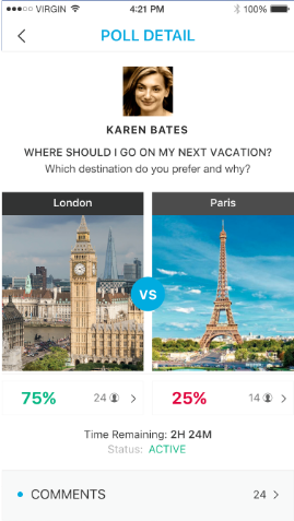 You then share it on Facebook as a quick poll and let your friends vote on the option they prefer.